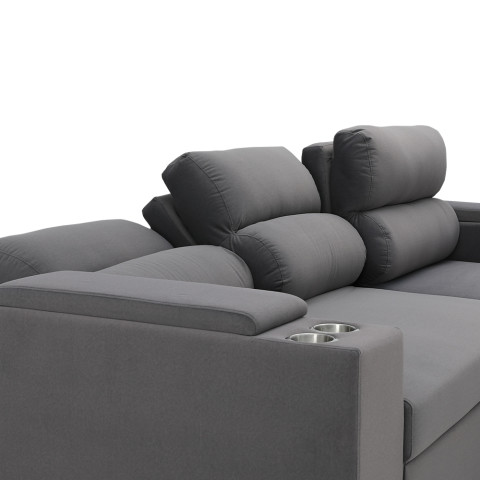 เพิ่มความสะดวกสบายยิ่งขึ้นด้วยฟังก์ชันรอบตัว ไม่ว่าจะเป็นที่วางแก้วสแตนเลส 4 จุด ให้คุณวางแก้วน้ำ แก้วกาแฟ หรือเครื่องดื่มระหว่างดูหนังได้อย่างมั่นใจ ลดโอกาสหกเลอะเทอะ และช่องเก็บของภายในที่วางแขนทั้ง 2 ฝั่ง (ขนาดช่องเก็บของโดยประมาณ กว้าง 20 x ลึก 61 x สูง 32 ซม.) เหมาะสำหรับเก็บรีโมต นิตยสาร ผ้าห่มผืนบาง หรือของใช้ชิ้นเล็กให้เป็นระเบียบและหยิบใช้ได้ทันทีเมื่อต้องการ