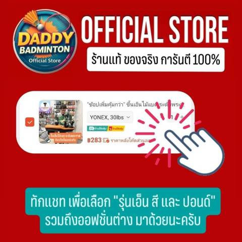โทร. 062-914-9146 (คุณบอม)ร้านแด๊ดดี้แบดมินตัน ชลบุรี ดูแลลูกค้ามือใหม่จนถึงสายแข่ง