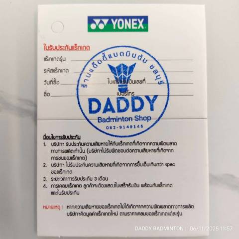 สำคัญ: ไม้ที่สั่งพร้อมบริการขึ้นเอ็นแล้ว ไม่สามารถเปลี่ยนหรือคืนได้ทุกกรณี