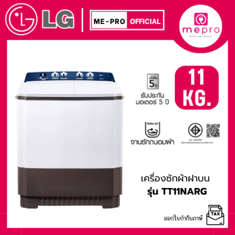LG เครื่องซักผ้าสองถัง รุ่น TT11NARG ขนาด 11 กก. เครื่องซักผ้าคู่ใจสำหรับทุกบ้าน ซักสะอาดมั่นใจด้วยเทคโนโลยี Roller Jet ช่วยถูและหมุนผสานกันอย่างทรงพลัง ขจัดคราบสกปรกได้ดี พร้อมถนอมเนื้อผ้าให้ดูดี สีสันสดใสเหมือนใหม่ อีกทั้งยังมีระบบช่วยลดความชื้น Wind Jet Dry ให้ผ้าแห้งไวขึ้น เหมาะกับการใช้งานประจำวัน คุ้มค่าและทนทาน พร้อม ของแท้รับประกันศูนย์