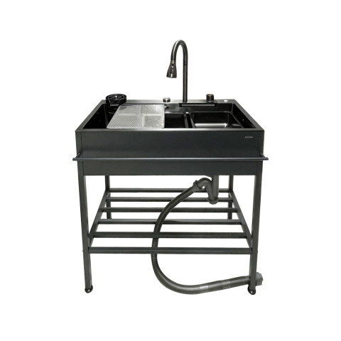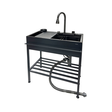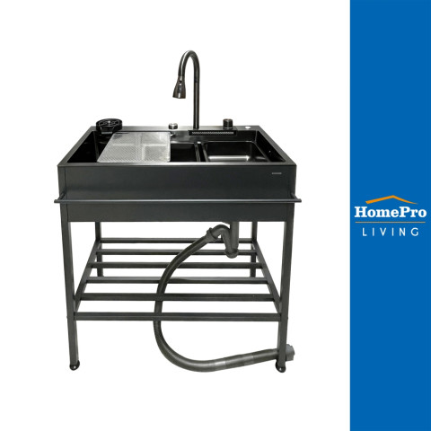 HomePro ซิงค์ขาตั้ง 1 หลุม KUC KURO8245BG (KUCINE) ซิงค์ขาตั้งดีไซน์โมเดิร์นโทนเทาดำ ช่วยยกระดับความสวยงามของครัว พร้อมใช้งานได้ครบชุดทั้งก๊อกซิงค์และชุดสายน้ำทิ้ง/ท่อน้ำทิ้ง เหมาะสำหรับบ้าน คอนโด หรือครัวต่อเติมที่ต้องการความแข็งแรง ทนทาน และดูแลง่ายในระยะยาว