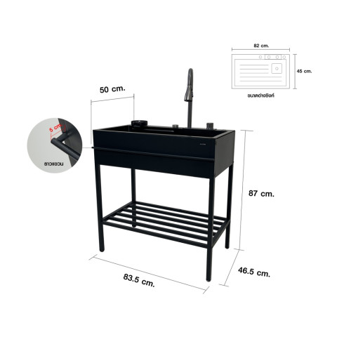 รุ่น/แบบ: KUC KURO8245BG (ซิงค์ขาตั้ง 1 หลุม)