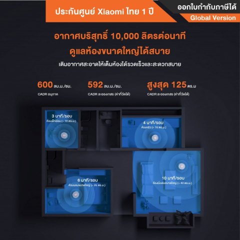 อนุภาค CADR 600 ลบ.ม./ชม. ปริมาณลมแรง ฟอกไว เหมาะกับห้องนั่งเล่น ห้องนอนใหญ่ ห้องทำงาน