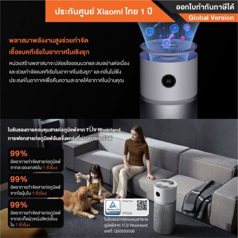 Xiaomi Smart Air Purifier Elite เครื่องฟอกอากาศอัจฉริยะประสิทธิภาพสูง ที่รวมทั้ง “ฟอกอากาศ + ฆ่าเชื้อ” ไว้ในเครื่องเดียว ช่วยลดความเสี่ยงจากเชื้อโรคและสารก่อภูมิแพ้ พร้อมคืนอากาศสะอาดสดชื่นให้บ้านอย่างมั่นใจ เหมาะสำหรับบ้านที่มีเด็กเล็ก ผู้สูงอายุ คุณแม่ตั้งครรภ์ หรือบ้านที่มีสัตว์เลี้ยง รับประกันศูนย์ Xiaomi ประเทศไทย 1 ปี