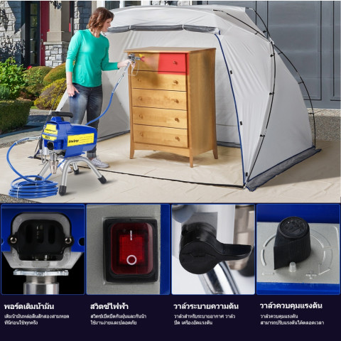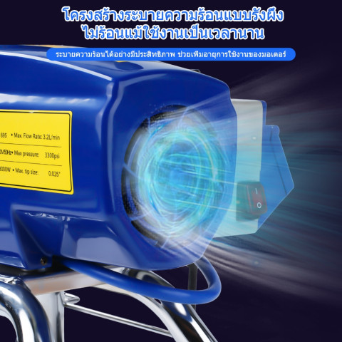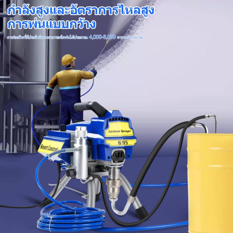 3000W เครื่องพ่นสีไฟฟ้าแรงดันสูง แบบไม่ใช้ลม (Airless) Plunger type 695 ตัวช่วยงานพ่นสีที่ให้ผิวงานเรียบเนียน สม่ำเสมอ ประหยัดเวลาและแรง เหมาะทั้งงานบ้าน งานช่าง และงานหน้างานที่ต้องการความเร็วและคุณภาพ พร้อมระบบปรับแรงดันอัตโนมัติและเริ่ม–หยุดอัตโนมัติ ใช้งานต่อเนื่องได้ดี มอเตอร์ไม่ร้อนง่ายแม้ใช้งานนาน