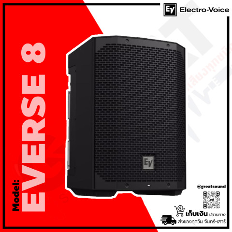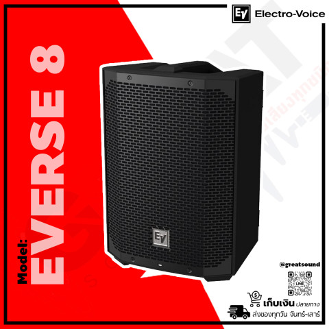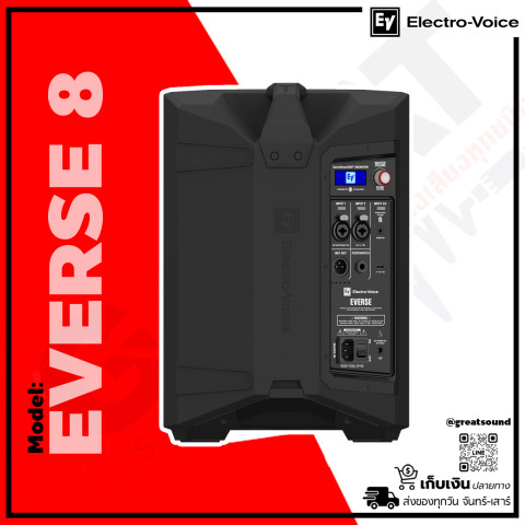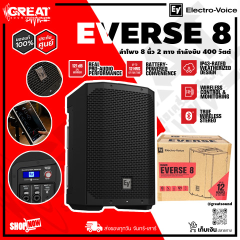 EV EVERSE 8 ลำโพงพกพา 2 ทางขนาด 8 นิ้ว ที่ให้พลังเสียงระดับโปรด้วยแอมป์ในตัว Class-D กำลังขับ 400 วัตต์ พร้อมความสะดวกสบายสำหรับการใช้งานนอกสถานที่ด้วย แบตเตอรี่ในตัว, Bluetooth audio และการควบคุมผ่านแอพ EV QuickSmart Mobile เสริมความอุ่นใจด้วยมาตรฐาน กันน้ำ/ละอองน้ำ IP43 เหมาะทั้งงานอีเวนต์ งานพูด งานแสดงสด หรือเปิดเพลงในพื้นที่กลางแจ้ง