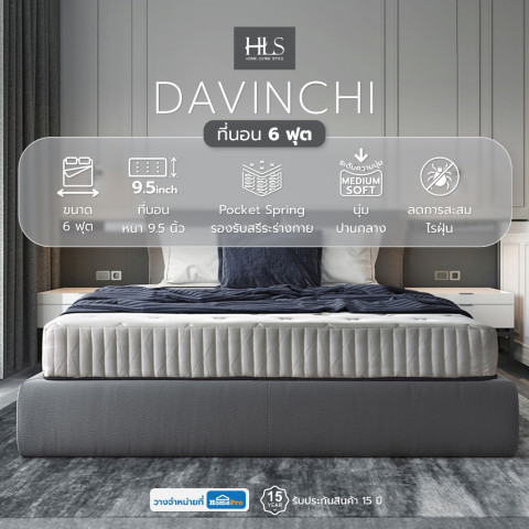 HomePro ที่นอน 6 ฟุต รุ่น DAVINCHI แบรนด์ HOME LIVING STYLE ราคา 9,842.00 บาท ที่นอนระบบพ็อกเก็ตสปริงที่ออกแบบมาเพื่อรองรับสรีระอย่างเป็นจุดต่อจุด ช่วยกระจายน้ำหนักให้เหมาะกับแต่ละส่วนของร่างกาย ลดแรงกดทับ หลับสบายยิ่งขึ้น เหมาะสำหรับผู้ที่มองหาที่นอน นุ่มปานกลาง นอนแล้วรู้สึกผ่อนคลายแต่ยังคงการรองรับที่ดี