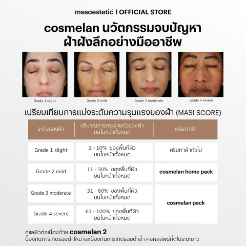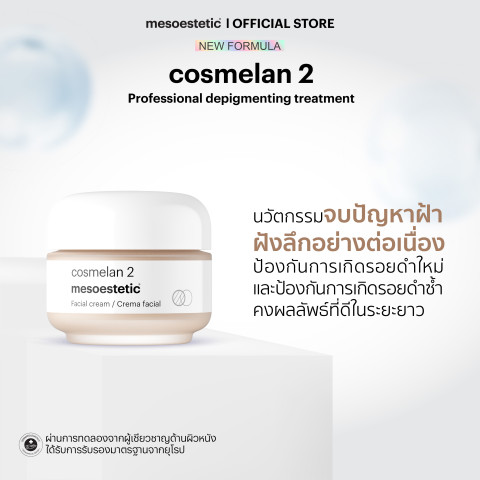 เผยผิวใหม่ที่กระจ่างใสขึ้นอย่างมั่นใจด้วย mesoestetic cosmelan 2 - คอสมิลาน2 ครีมทาฝ้าระดับคลินิกที่ได้รับความนิยมทั่วโลก ช่วยลดเลือนฝ้า กระ และจุดด่างดำที่ฝังลึก เหมาะสำหรับผู้ที่มีปัญหาฝ้าหนัก หรือฝ้าเรื้อรังที่รักษายาก ให้ผิวหน้าดูสม่ำเสมอ เรียบเนียน และเปล่งประกายขึ้นอย่างเป็นธรรมชาติ