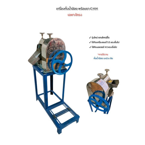 เครื่องคั้นน้ำอ้อย พร้อมขา C.H.H คือเครื่องคั้นน้ำอ้อยคุณภาพสูงสำหรับผู้ที่ต้องการเริ่มต้นหรือขยายธุรกิจน้ำอ้อยสด รวมถึงร้านน้ำผลไม้และร้านอาหารที่ต้องการเพิ่มเมนูเครื่องดื่มสุขภาพ ตัวเครื่องออกแบบมาให้ใช้งานง่าย แข็งแรง ทนทาน พร้อมระบบคั้นประสิทธิภาพสูง ช่วยให้คุณคั้นน้ำอ้อยหรือน้ำผลไม้ได้อย่างรวดเร็วและต่อเนื่อง