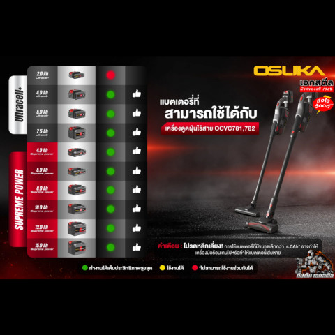 หากคุณกำลังมองหาเครื่องดูดฝุ่นไร้สายที่ทั้งแรง ทน ใช้งานสะดวก และมีหัวต่อให้เลือกหลากหลายสำหรับทุกมุมของบ้าน OSUKA OCVC782-M1 23Kpa รุ่นท็อปเครื่องนี้ คือคำตอบที่คุ้มค่า ทั้งในแง่ประสิทธิภาพและการรับประกันที่ยาวนาน