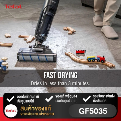 Tefal FLOOR WASHER X-CLEAN 4 รุ่น GF5035F0 GF5035 เครื่องดูดฝุ่นถูพื้นไร้สายระดับพรีเมียม ที่ออกแบบมาเพื่อให้การทำความสะอาดบ้านเป็นเรื่องง่าย รวดเร็ว และสะอาดล้ำลึกยิ่งกว่าที่เคย ด้วยระบบทำงานแบบ 2-in-1 ที่ทั้งดูดฝุ่นและถูพื้นได้พร้อมกันในครั้งเดียว ช่วยประหยัดเวลาได้อย่างมีประสิทธิภาพ เหมาะสำหรับบ้านยุคใหม่ที่ต้องการทั้งความสะดวกและความสะอาดสูงสุด