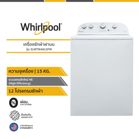 เครื่องซักผ้าฝาบน Whirlpool รุ่น Atlantis Top Load 3LWTW4815FW ขนาดความจุ 15 กก. มาพร้อมมอเตอร์อินเวอร์เตอร์ ให้พลังซักแรง ทนทาน และประหยัดพลังงาน รองรับการซักผ้าปริมาณมากและผ้าหนาเป็นพิเศษได้ในครั้งเดียว เหมาะสำหรับทั้งครอบครัวใหญ่และการใช้งานเชิงพาณิชย์ พร้อมฟรีขาตั้ง และการรับประกันยาวนาน 5 ปี*
