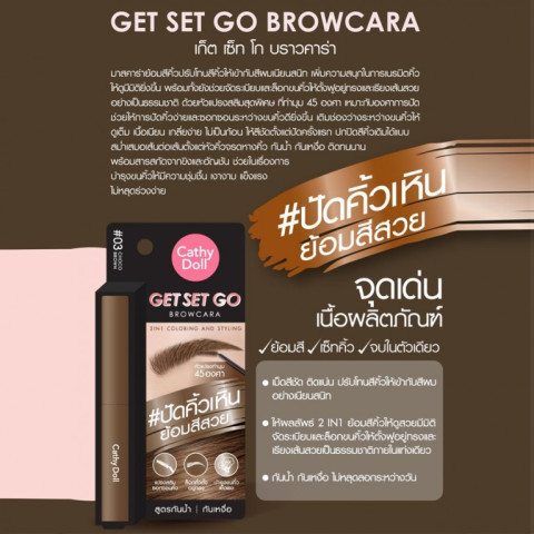 เปลี่ยนลุคคิ้วให้สวยละมุนเข้ากับสีผมได้ในไม่กี่วินาที ด้วยมาสคาร่าย้อมสีคิ้ว Cathy Doll เก็ตเซ็ทโกบราวคาร่า ที่ช่วยปรับโทนสีคิ้วให้เนียนกลืนไปกับสีผมอย่างเป็นธรรมชาติ เติมมิติให้ดวงตาและกรอบหน้า พร้อมจัดแต่งเส้นขนคิ้วให้ฟูสวย เรียงตัวเป๊ะ ดูเป็นธรรมชาติแต่ยังคงความคมชัดตลอดวัน