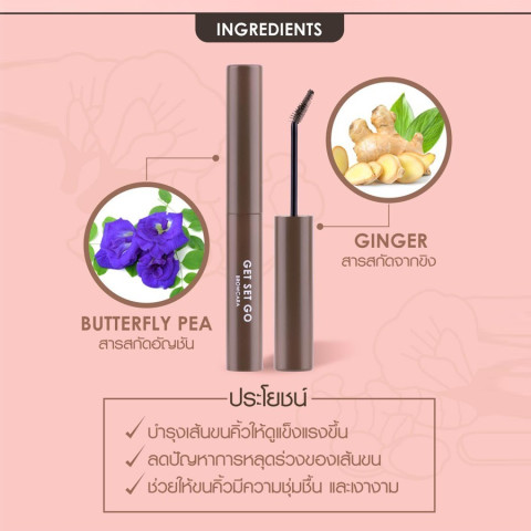 มีสารสกัดจากขิงและอัญชัน ช่วยบำรุงขนคิ้วให้แข็งแรงและชุ่มชื้น
