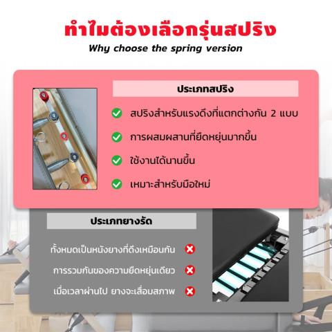 ยกระดับการออกกำลังกายแบบพิลาทิสและโยคะของคุณด้วย pilates reformer เครื่องพิลาทิสรีฟอร์เมอร์ เตียงพิลาทิส อุปกรณ์ออกกำลังกายครบชุด ดีไซน์ทันสมัย โครงสร้างแข็งแรง รองรับการฝึกครบทุกท่วงท่า ช่วยเสริมสร้างกล้ามเนื้อแกนกลาง ลีนกระชับทั้งร่างกาย พร้อมระบบสปริงแรงตึงสูง ให้แรงต้านได้อย่างต่อเนื่อง นุ่มลื่น และปลอดภัย เหมาะทั้งสำหรับผู้เริ่มต้น และผู้ที่ออกกำลังกายเป็นประจำ