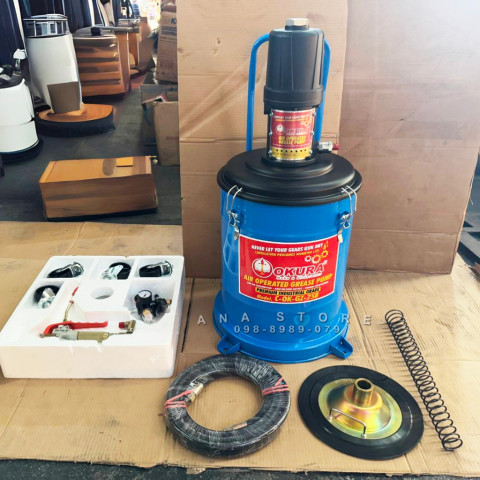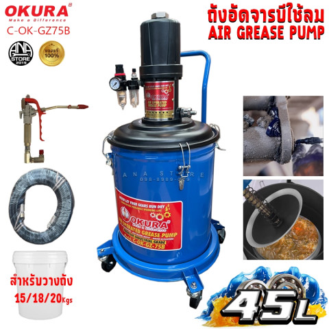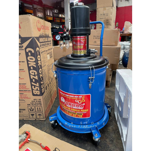 ถังอัดจารบีใช้ลม OKURA รุ่น GZ-75B (AIR GREASE PUMP) ราคา 10,400.00 บาท ของแท้ 100% ออกแบบมาสำหรับงานอัดจารบีในอู่ซ่อม โรงงาน และงานบำรุงรักษาเครื่องจักร ช่วยจ่ายจารบีได้สม่ำเสมอ รวดเร็ว ใช้งานสะดวกด้วยระบบลม เหมาะกับงานที่ต้องการความต่อเนื่องและประหยัดแรง