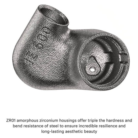 บอดี้วัสดุ AMLOY-ZR01 (เซอร์โคเนียมความแข็งแรงสูง) ผลิตด้วยเทคนิคการพิมพ์สามมิติ ทำให้ตัวบอดี้เป็นชิ้นเดียว แข็งแรง ทนทาน และได้รูปทรงแม่นยำ