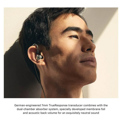 ภายในใช้ไดร์เวอร์ไดนามิก TrueResponse ขนาด 7 มม. ที่ออกแบบมาเพื่อลดความเพี้ยนให้ต่ำที่สุด ทำงานร่วมกับโครงสร้างห้องควบคุมอากาศ Dual Resonator Chambers (D2CA) ช่วยให้รายละเอียดเสียงนิ่ง เที่ยงตรง และแยกชิ้นดนตรีได้ดี ขณะที่การประกอบขั้นสุดท้ายผ่านการตรวจสอบและเก็บงานด้วยมือ เพื่อมาตรฐานเสียงและความประณีตตามแบบ Sennheiser