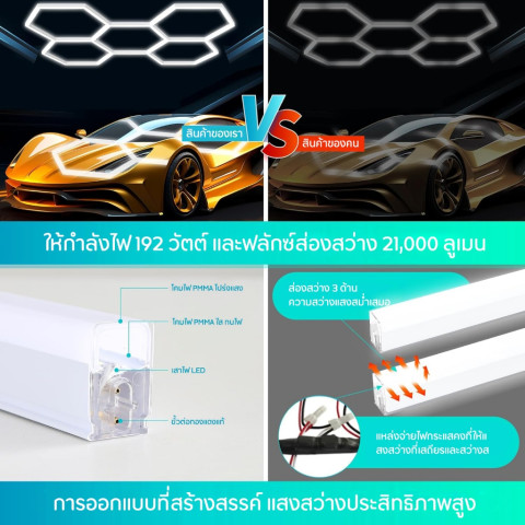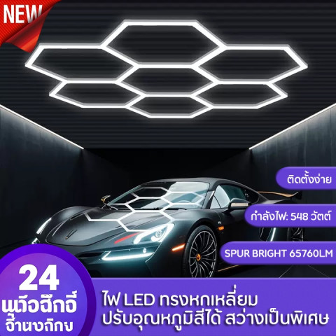 เปลี่ยนเพดานธรรมดาให้กลายเป็นพื้นที่สว่างคมชัดระดับสตูดิโอด้วย [จัดส่งฟรี] ไฟรังผึ้งทรงหกเหลี่ยม ไฟโรงรถ ไฟ LED รังผึ้ง กันน้ำและกันความชื้น ดีไซน์สุดล้ำในรูปทรงหกเหลี่ยม ที่ให้ทั้งความสวยงามและประสิทธิภาพแสงสว่างในเวลาเดียวกัน เหมาะสำหรับใช้เป็นไฟเพดานโรงรถ ไฟล้างรถ ห้องทำงาน ห้องฟิตเนส โชว์รูม หรือสตูดิโอถ่ายภาพรถ