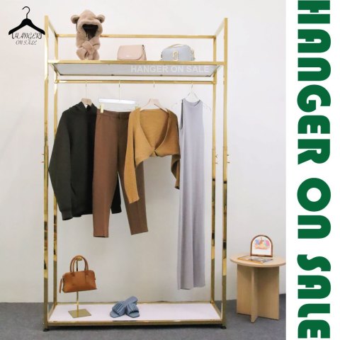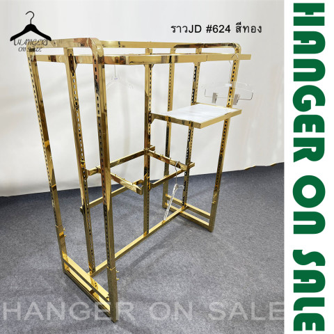 ราวแขวนเสื้อผ้าสีทองสแตนเลสชุบทอง ขนาดใหญ่ พร้อมที่วางกระเป๋า ดีไซน์เรียบหรู สีทองเงาพรีเมียม เหมาะทั้งสำหรับโชว์รูม ร้านเสื้อผ้า และการใช้งานในบ้าน รวมถึงใช้เป็นราวสำหรับไลฟ์สด จัดฉากให้ดูโปรขึ้นทันที โครงสร้างสแตนเลสแข็งแรง รองรับการแขวนเสื้อผ้าได้ดี และสามารถปรับระดับความสูงให้เหมาะกับการใช้งานได้ตามต้องการ (มีตัวเลือกแบบมีล้อ/ไม่มีล้อ)