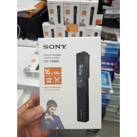 Sony (ของแท้) Stereo Voice Recorder รุ่น ICD-TX660 (16GB) สีดำ (Black) เครื่องบันทึกเสียงคุณภาพสูง ดีไซน์บางเฉียบ น้ำหนักเบา พกพาสะดวก เหมาะสำหรับบันทึกการประชุม เลคเชอร์ สัมภาษณ์ หรือจดไอเดียระหว่างวัน ให้เสียงชัดเจนเป็นธรรมชาติด้วยไมโครโฟนสเตอริโอในตัว พร้อมฟังก์ชันตัดเสียงรบกวนเพื่อการฟังย้อนหลังที่สบายหู