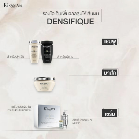 เติมผลลัพธ์ให้ปังยิ่งขึ้น แนะนำใช้ร่วมกับไลน์ Densifique เช่น แชมพูและมาส์ก เพื่อช่วยเสริมวอลลุ่มและคุณภาพเส้นผมให้ดูหนาแน่นอย่างต่อเนื่อง