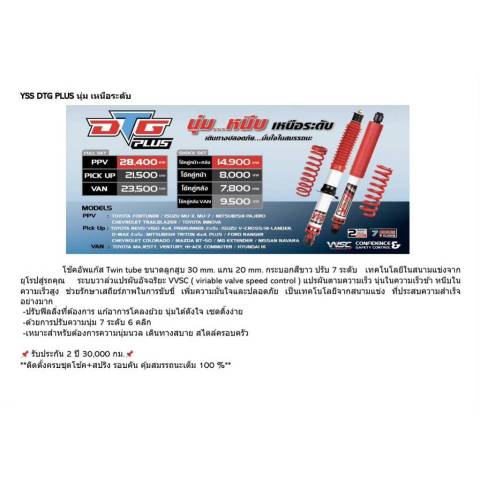 หมายเหตุ: รายการนี้ระบุสเปคเป็น DTG Plus (คู่หน้า) หากต้องการจัดชุด หน้า+หลัง เพื่อรับของแถม/ให้เซตติ้งบาลานซ์ทั้งคัน แนะนำทักแชทแจ้งรุ่นที่ต้องการ (DTG/DTG Plus/DTG Sport/E-Series/Z-Series)