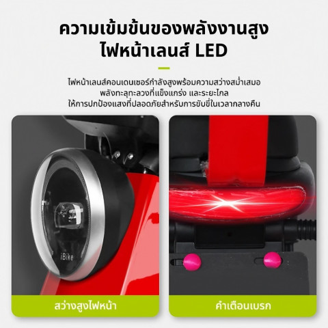 ไฟส่องสว่าง: ไฟหน้า LED เลนส์ + ไฟเลี้ยวซ้าย/ขวา