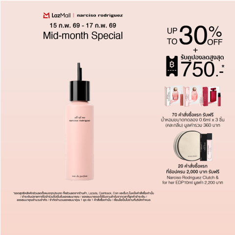 [Season-End Exclusive] Narciso Rodriguez All of Me EDP น้ำหอมที่ถ่ายทอดตัวตนอย่างมีมิติด้วยกลิ่นหอมโทน prismatic ให้ความรู้สึก “สะท้อนแสง” หลายเฉดในขวดเดียว—ทั้งความมั่นใจ ความอบอุ่น และเสน่ห์ที่น่าค้นหา เหมาะสำหรับวันทำงานจนถึงค่ำคืนพิเศษ เติมคาแรกเตอร์ให้โดดเด่นอย่างเป็นธรรมชาติ