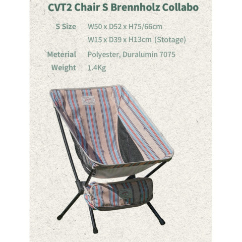 เก้าอี้แคมป์รุ่นพิเศษจากการคอลแลบระหว่าง Brennholz x Monterra ในรุ่น CVT2 Collaboration Chair S ดีไซน์โดดเด่นในแบบลิมิเต็ด เหมาะสำหรับสายแคมป์ สายแต่งเซ็ตอุปกรณ์ หรือผู้ที่ชอบไอเทมคอลแลบที่มีจำนวนจำกัด นั่งสบาย จัดวางสวย ใช้ได้ทั้งกลางแจ้งและในบ้าน