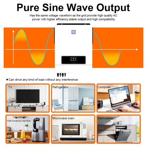 อินเวอร์เตอร์ไฮบริด 10.2KW 48V พร้อม MPPT ในตัว โซลูชันพลังงานแสงอาทิตย์ที่ครบจบในเครื่องเดียว รองรับทั้ง Off-grid / On-grid ให้ไฟบ้าน 230Vac คลื่นไซน์บริสุทธิ์ (Pure Sine Wave) ใช้งานได้กับอุปกรณ์ไฟฟ้าทั่วไปและโหลดที่ต้องการความเสถียรสูง พร้อมอินพุตแผงโซลาร์แรงดันสูง 90–500Vdc และคอนโทรลเลอร์ชาร์จแบบ MPPT ช่วยดึงพลังงานจากแผงได้คุ้มค่า เหมาะสำหรับบ้านพักอาศัย ร้านค้า ฟาร์ม หรือระบบสำรองไฟที่ต้องการกำลังสูง