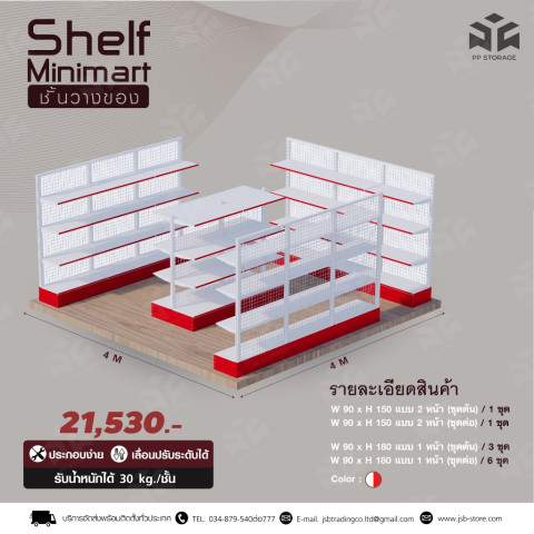 เซ็ตเปิดร้านมินิมาร์ท/ร้านชำ (ชั้นวางรุ่นรับน้ำหนัก 30kg) ขนาดพื้นที่ 4×4 ราคา 21,310.00 บาท
