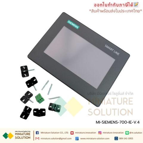 Siemens Smart 700 IE V4 หน้าจอสัมผัส 7 นิ้ว (SMART Panel Touch operation 7″ widescreen 700IE) คือ HMI สำหรับงาน Factory Automation ที่ออกแบบมาให้ควบคุมและมอนิเตอร์เครื่องจักรได้สะดวกผ่านหน้าจอสัมผัสขนาด 7 นิ้วแบบไวด์สกรีน เหมาะกับงานติดตั้งหน้าเครื่อง (Machine Interface) ในไลน์ผลิต ระบบอัตโนมัติ และงานอุตสาหกรรมที่ต้องการความเสถียรและการใช้งานที่คล่องตัว