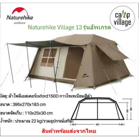 🔥พร้อมส่งจากไทย🇹🇭 Naturehike เต็นท์ Village 13 รุ่น Upgraded เคลือบ Ti Black Coat (V13) + กราวชีท ในราคา 14,280.00 บาท เต็นท์ขนาดใหญ่สไตล์แคมป์ปิ้งที่ออกแบบมาเพื่อความสบายแบบ “บ้านเคลื่อนที่” ด้วยโครงสร้าง Two Bedroom & One Living Room เหมาะสำหรับ 3-4 คน กางแบบ กึ่งอัตโนมัติ ช่วยให้ตั้งแคมป์ได้รวดเร็วและเป็นระเบียบ เหมาะทั้งทริปครอบครัว ทริปเพื่อน หรือสายแคมป์ที่ต้องการพื้นที่ใช้งานจริงจัง