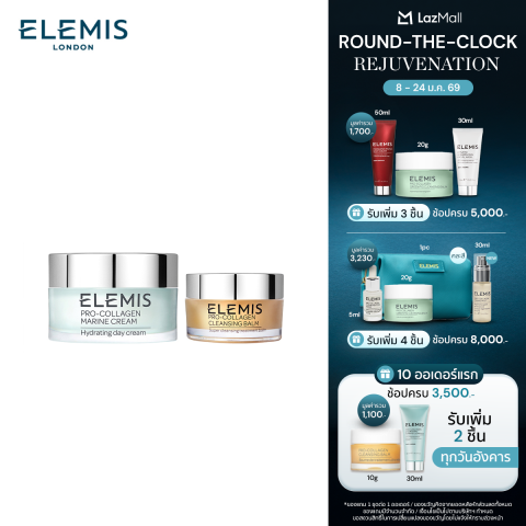 Elemis Pro-Collagen Cleanse and Glow เซ็ตดูแลผิวระดับพรีเมียมที่รวม 2 ไอเท็มขายดี—บาล์มทำความสะอาดและครีมบำรุงสูตรมารีน—เพื่อการ “ล้างให้สะอาด + บำรุงให้เด้ง” ในรูทีนเดียว ช่วยล้างเครื่องสำอางและมลภาวะได้อย่างล้ำลึก พร้อมเติมความชุ่มชื้นและดูแลริ้วรอย ให้ผิวดูเรียบเนียน กระชับ และเปล่งประกาย