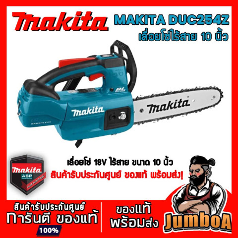 MAKITA DUC254Z เลื่อยโซ่ไร้สาย 18V บาร์ 10" เครื่องเปล่า (ไม่รวมแบตเตอรี่และแท่นชาร์จ) ราคา 7,800.00 บาท (รวม VAT แล้ว) พร้อมงานตัดแต่งกิ่งไม้/ตัดไม้ใช้งานทั่วไปที่ต้องการความคล่องตัว ใช้งานสะดวกไม่ต้องพึ่งสายไฟ เหมาะทั้งช่างมืออาชีพและผู้ใช้งานในสวน