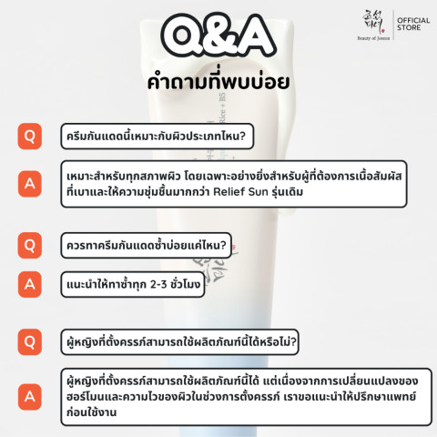 กันแดดเนื้อบางเบาสไตล์ “Aqua-Fresh” ที่ออกแบบมาเพื่อคนผิวมันและทุกสภาพผิว ให้ฟีลสดชื่น ซึมไว ไม่เหนอะหนะ ไม่ทิ้งคราบขาว พร้อมเติมความชุ่มชื้นและปลอบประโลมผิวจากความร้อนและรังสี UV เหมาะสำหรับใช้ทุกวัน โดยเฉพาะผู้ที่ชอบ Relief Sun แต่ต้องการสัมผัสที่เบากว่าเดิม