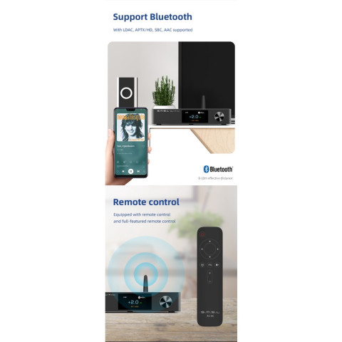ควบคุมสะดวกด้วยรีโมต ปรับการใช้งานได้ง่ายจากระยะไกล เหมาะกับการตั้งเป็น DAC ประจำโต๊ะหรือห้องฟังเพลง