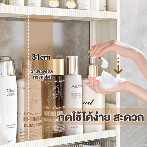 ขนาด 3 ชั้น (มีลิ้นชัก + ตะขอ): 40 x 70.5 x 10 ซม.