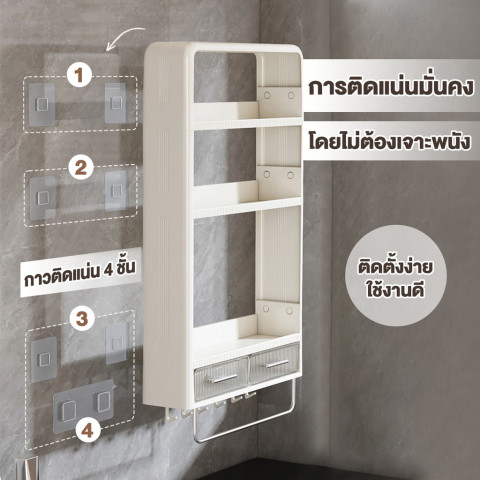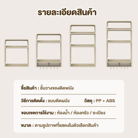ชั้นวางของติดผนังอเนกประสงค์ สำหรับครัว/ห้องน้ำ แบบไม่ต้องเจาะ ช่วยจัดระเบียบพื้นที่ให้โล่งขึ้นทันที ไม่เกะกะ เคลียร์ของใช้ให้เป็นหมวดหมู่ ติดตั้งง่ายด้วยระบบแขวนยึดผนังโดยไม่ต้องเจาะ ไม่ทำให้ผนังเสียหาย เหมาะกับบ้าน คอนโด หอพัก และพื้นที่จำกัด