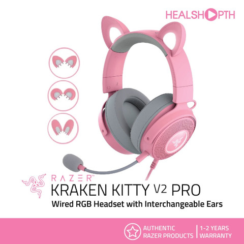 Razer Kraken Kitty V2 Pro Quartz หูฟังเกมมิ่งสีชมพูสุดไอคอนิกสำหรับสายสตรีมและสายคอนเทนต์ มาพร้อมหูเปลี่ยนได้ 3 แบบ (Kitty / Bear / Bunny) เติมคาแรกเตอร์ให้โต๊ะเกมและฉากไลฟ์ของคุณโดดเด่นกว่าเดิม พร้อมไฟ Razer Chroma RGB แบบ Stream Reactive ที่ตอบสนองต่อเหตุการณ์ในสตรีม ช่วยยกระดับบรรยากาศให้ดูมืออาชีพทันที