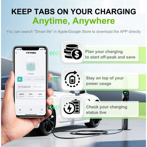 TAYNIU 7KW Type 2 EV Charger สาย 5M พร้อมอะแดปเตอร์ EU + ควบคุมผ่าน WiFi/App คือโซลูชันชาร์จรถยนต์ไฟฟ้าที่บ้านแบบ “เร็ว-ฉลาด-ปลอดภัย” ช่วยให้คุณชาร์จข้ามคืนได้สบาย และตรวจสอบทุกอย่างได้จากสมาร์ทโฟน เหมาะกับรถ Type 2 หลากหลายรุ่น เช่น BYD, Tesla, MG, GWM ORA Good Cat และ EV Type 2 ส่วนใหญ่
