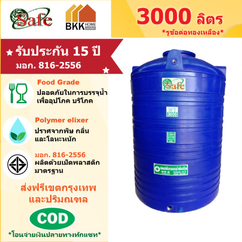 ถังเก็บน้ำบนดิน SAFE ลูกโลก สีน้ำเงิน ขนาด 3000 ลิตร มาตรฐาน มอก.816-2556 และ Food Grade เหมาะสำหรับบ้านพักอาศัย อาคาร หรือร้านค้า ที่ต้องการถังเก็บน้ำขนาดใหญ่ ดีไซน์สวย ทนทาน ใช้งานได้ยาวนาน มาพร้อม ถัง+ลูกลอย คุ้มค่า พร้อมส่งฟรีในพื้นที่กรุงเทพและปริมณฑล
