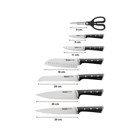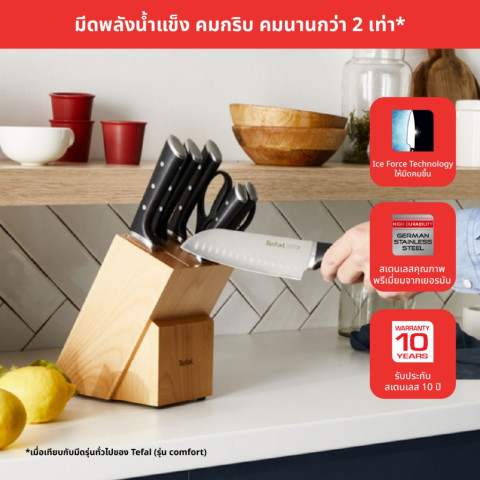 TEFAL ชุดเซ็ตมีด Ice Force 7 ชิ้น พร้อมที่จัดเก็บมีด รุ่น K232S714 ชุดมีดครบเครื่องสำหรับครัวบ้านที่ต้องการความคม ทนทาน และจัดเก็บเป็นระเบียบในที่เดียว มาพร้อมบล็อกจัดเก็บมีดดีไซน์เรียบหรูสีเงิน ช่วยให้หยิบใช้งานสะดวก ประหยัดพื้นที่ และทำอาหารได้คล่องตัวทุกเมนู ตั้งแต่หั่น สไลซ์ ซอย ไปจนถึงเตรียมวัตถุดิบละเอียด