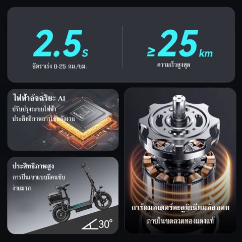 แรงและไต่ทางชันได้ดี ด้วยมอเตอร์ 48V 800W เหมาะทั้งทางเรียบและทางออฟโรด