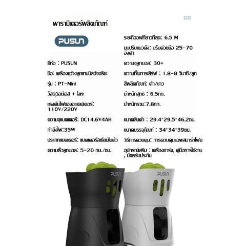 【พร้อมส่ง】Pusun PT-mini เครื่องยิงลูกเทนนิสอัจฉริยะ (รองรับ 30 ลูก) สีดำ ราคา 12,700.00 บาท