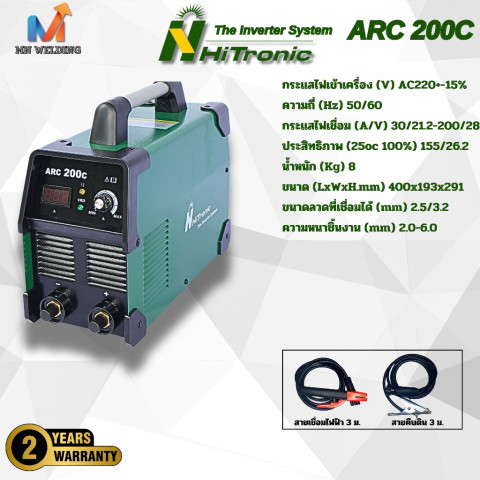 Hitronic Arc200C เครื่องเชื่อมไฟฟ้า 200 แอมป์ ไฟ 220V ตัวช่วยงานเชื่อมที่ให้กำลังไฟสม่ำเสมอ เหมาะทั้งงานช่างทั่วไป งานซ่อมบำรุง และงานประกอบโครงเหล็ก ใช้งานกับไฟบ้าน 220V ขนาดกะทัดรัด น้ำหนักเพียง 8 กก. เคลื่อนย้ายสะดวก พร้อมอุปกรณ์สายเชื่อมและสายดินมาให้ครบ ใช้งานได้ทันที