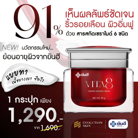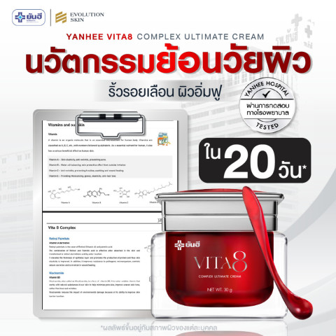 เซ็ตเคลียร์ฝ้า ยันฮี Yanhee VITA 8 ครีมเวชสำอางค์ระดับพรีเมียมจากโรงพยาบาลยันฮี เพื่อผิวแน่น เรียบเนียน ดูอิ่มฟู ช่วยเติมเต็มชั้นผิวร่องลึก ลดเลือนริ้วรอยและความหย่อนคล้อย พร้อมดูแลจุดด่างดำให้แลดูจางลง เผยผิวกระจ่างใสขึ้นอย่างเป็นธรรมชาติ เหมาะสำหรับผู้ที่อยากยกระดับผิวให้ “ผิวหรูดูแพง” ในทุกวัน