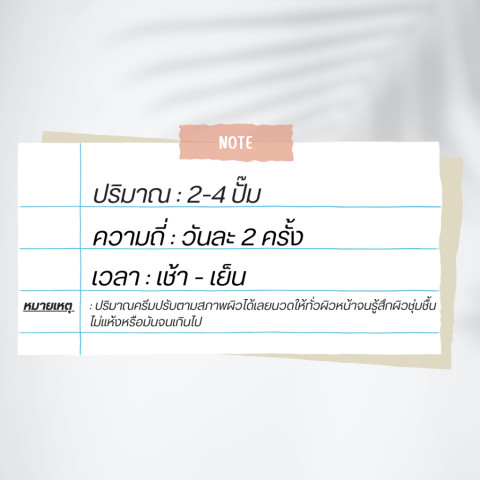 ทุกสภาพผิว (แนะนำเริ่มใช้แบบค่อยเป็นค่อยไปสำหรับผิวบอบบาง)
