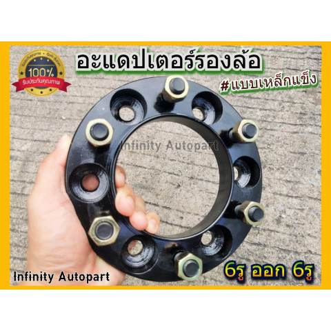 (1ข้าง) อะแดปเตอร์รองล้อ 6รู ออก 6รู [แบบเหล็กแข็ง] มีบ่ารับ พร้อมน๊อต ครบชุด อย่างดี มีมาตราฐาน